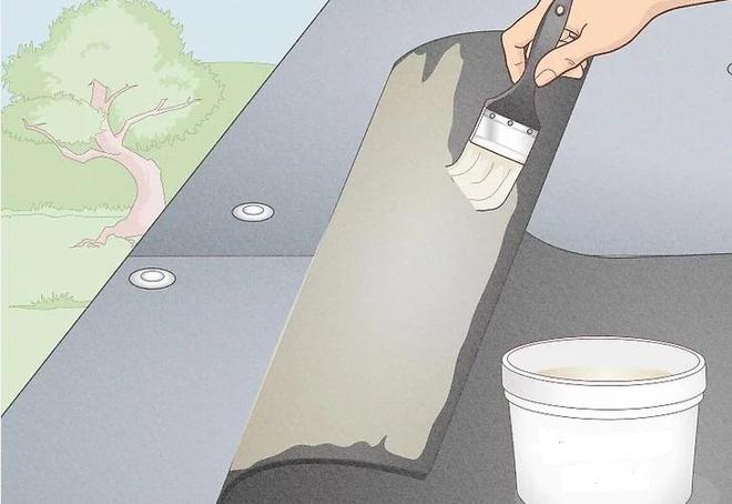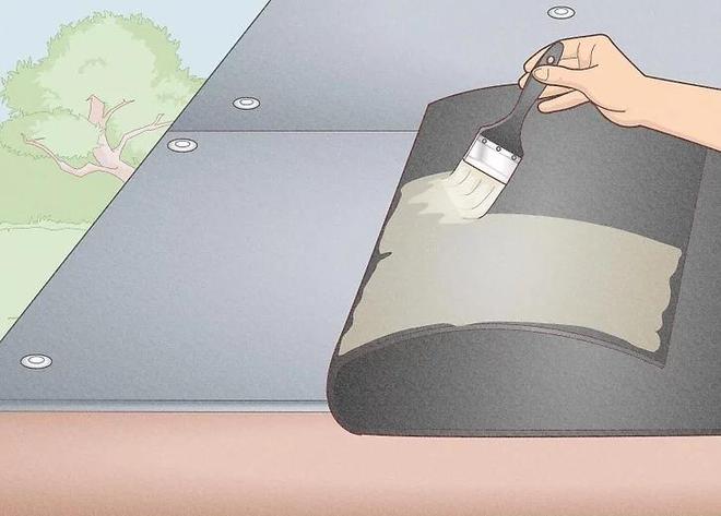 用手或推掃帚將橡塑鋪開,將其固定在屋頂上。在將這件作品晾干并移至下一件之前,請確保沒有任何腫塊或腫塊。
