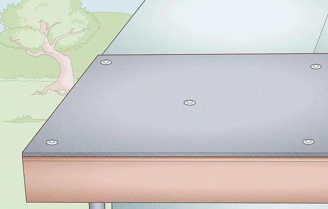 在屋頂甲板上安裝隔熱板。這將有助于讓您的家保持夏季涼爽、冬季溫暖。將1.2 x 2.4 m的隔熱板鋪開,使其覆蓋整個屋頂,并在整個屋頂周圍形成15cm的周長。使用 4 個金屬緊固件和螺釘(板的每個角各一個)將板固定到屋頂上。