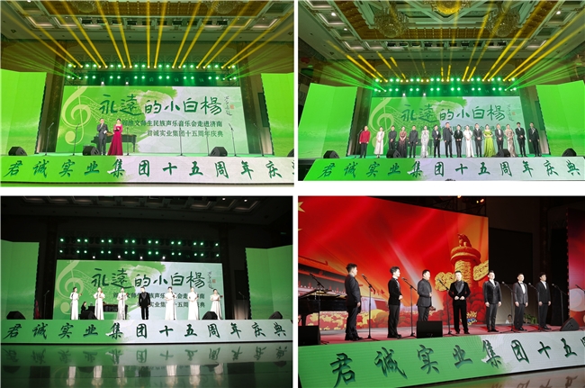 來自全國的數(shù)百家君誠代理商客戶利用開會之余,感受了音樂藝術、齊魯文化與自然美景。欣賞君誠實業(yè)集團十五周年慶典特別節(jié)目永遠的小白楊(閻維文師生民族聲樂音樂會),歌唱家閻維文教授多次主唱,歌聲響起,一如既往贏得超人氣的熱烈掌聲;閻維文老師及弟子李勇君、陳冠馥、龔爽、馬小明、劉大成、徐晶晶、楊雅雯、付芮等二十多名歌唱藝術家為大家?guī)硪粓鼍式^倫的聽覺視覺盛宴。