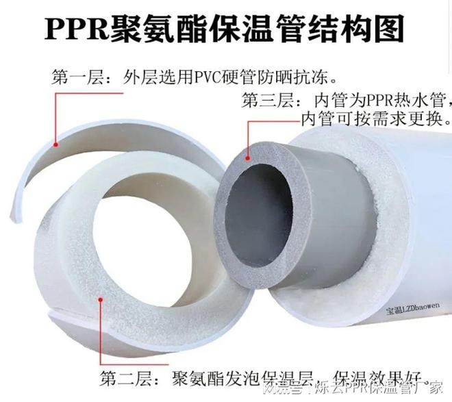 湖北某個(gè)五星酒店就因?yàn)楣艿栏g破裂導(dǎo)致被迫停業(yè)維修,損失高達(dá)百萬元。而爍云PPR聚氨酯保溫管的三層復(fù)合結(jié)構(gòu)就完美解決了這個(gè)問題,內(nèi)層采用食品級(jí)PPR管保障水質(zhì)安全,中間是硬質(zhì)聚氨酯泡沫形成保溫層,外層采用高強(qiáng)度PVC護(hù)套管抵御腐蝕。根據(jù)實(shí)際測(cè)量數(shù)據(jù)PPR保溫管的導(dǎo)熱系數(shù)低至0.013-0.03 kcal,和傳統(tǒng)管道對(duì)比減少了6倍熱損耗,每一百米管道水溫僅降0.1℃。