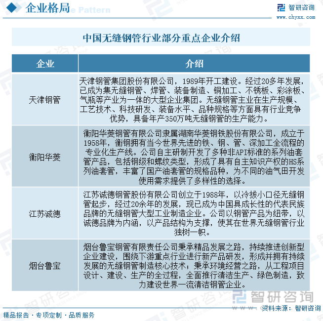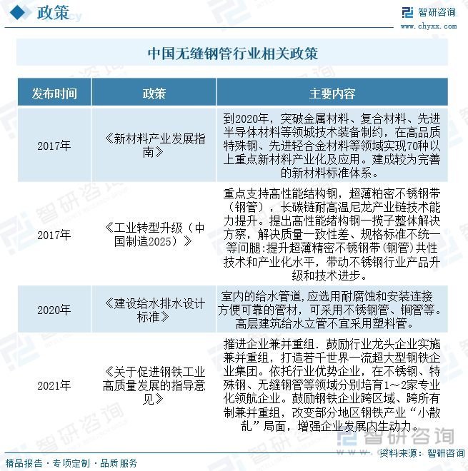 相關(guān)報告:智研咨詢發(fā)布的《2024-2030年中國無縫鋼管行業(yè)市場專項調(diào)研及投資前景研究報告》