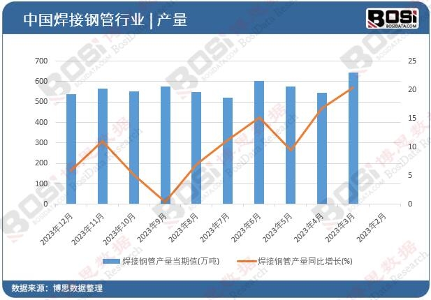 據(jù)博思數(shù)據(jù)發(fā)布的《2024-2030年中國焊接鋼管市場分析與投資前景研究報(bào)告》表明:2023年我國焊接鋼管產(chǎn)量累計(jì)值達(dá)6415.1萬噸,期末總額比上年累計(jì)增長8.8%。