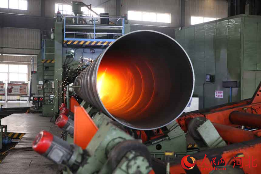十一月中旬,滄州市孟村回族自治縣河北華洋鋼管有限公司直縫十車(chē)間,廠房寬闊,機(jī)械轟鳴、聲聲入耳。在自動(dòng)化生產(chǎn)流水線上,可以看到約半米寬的鋼板連續(xù)不斷延伸進(jìn)入制造設(shè)備中,不到一分鐘,jinnianhui金年會(huì)官網(wǎng)在幾十米之外,長(zhǎng)12米、口徑133毫米成品鋼管走下流水線,在自動(dòng)設(shè)備的引導(dǎo)下,放置到相應(yīng)的成品區(qū)域。
